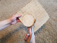 Before beginning the fix, make sure the carpet and the sample piece are clean. Some homes have extra matching carpet leftover; however, carpet can always be purchased at a home improvement store.