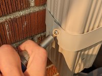 Load a screw into the strip, positioning it so that it can be screwed into the holes of both the strip and the gutter.