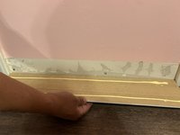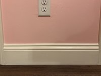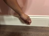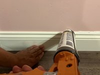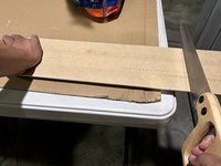 Firmly hold down the baseboard. Steadily begin to saw the baseboard in a back and forth motion where you drew the line.