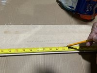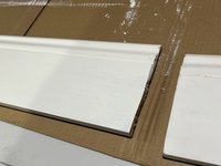 Lay the baseboard down on the table. Make sure the part you are going to cut is hanging off of the table.