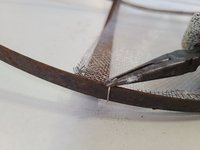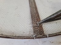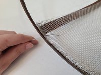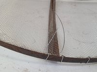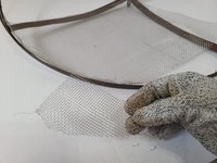 Insert one end of a piece of steel wire into a hole in the mesh near the outer circle of the lid frame.